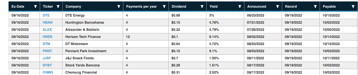Benzinga Dividend Calendar