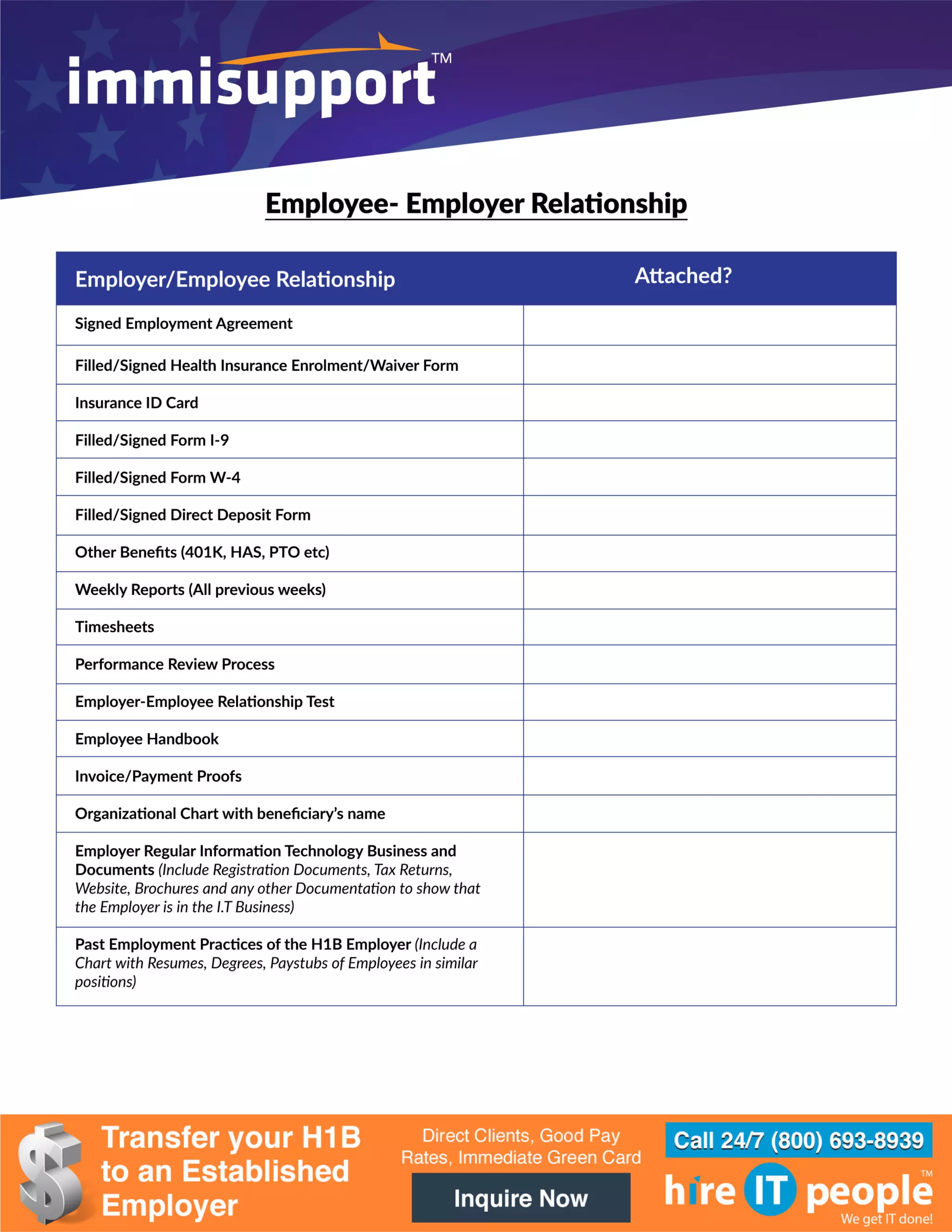 H1B Visa RFE Response Checklist