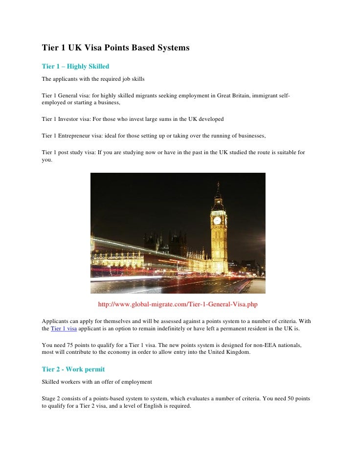 How to apply for a visa to come to the uk Tier 1 (exceptional talent) persons internationally. All applicants for entry clearance must have leave as a tier 1 (investor) migrant on, or must have had such leave within the last 12 months immediately before, the date of. All migrants entering the uk as a tier 1 (entrepreneur) migrant must.