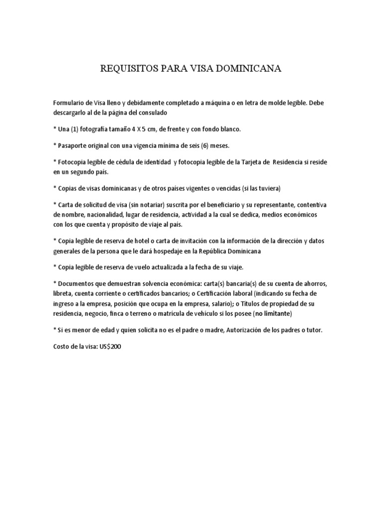 Requisitos para Visa Dominicana PDF