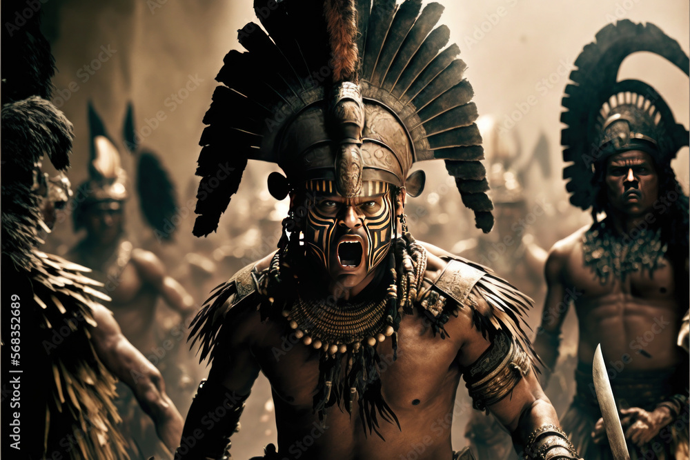 Naklejka Traditional fierce Aztec warrior shouting a war cry in